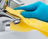 Наши специалисты работают в брендированной униформе и перчатках. Мы используем экологически безопасные химические средства, не вызывающие аллергические реакции, обеспечивающие сохранность поверхностей
